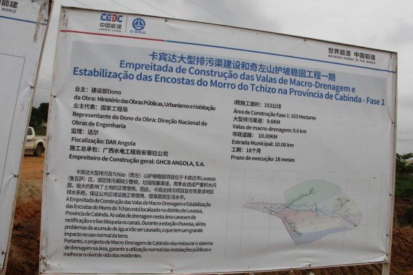 O projecto, a cargo da empresa Chinesa GHCB Angola, S.A, envolve a construção de sistemas de escoamento das águas pluviais a partir do bairro do Tchizo, passando pelo 1º de Maio até a zona litoral do Luvassa.