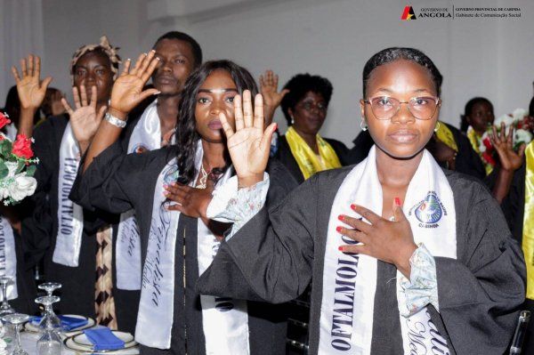 Membros do Governo Provincial de Cabinda, técnicos da saúde e familiares estiveram presentes no Centro Cultural Chiloango para testemunhar a cerimónia de outorga de diplomas e certificados aos recém-formados no sector da saúde em diversas especialidades pós-média.