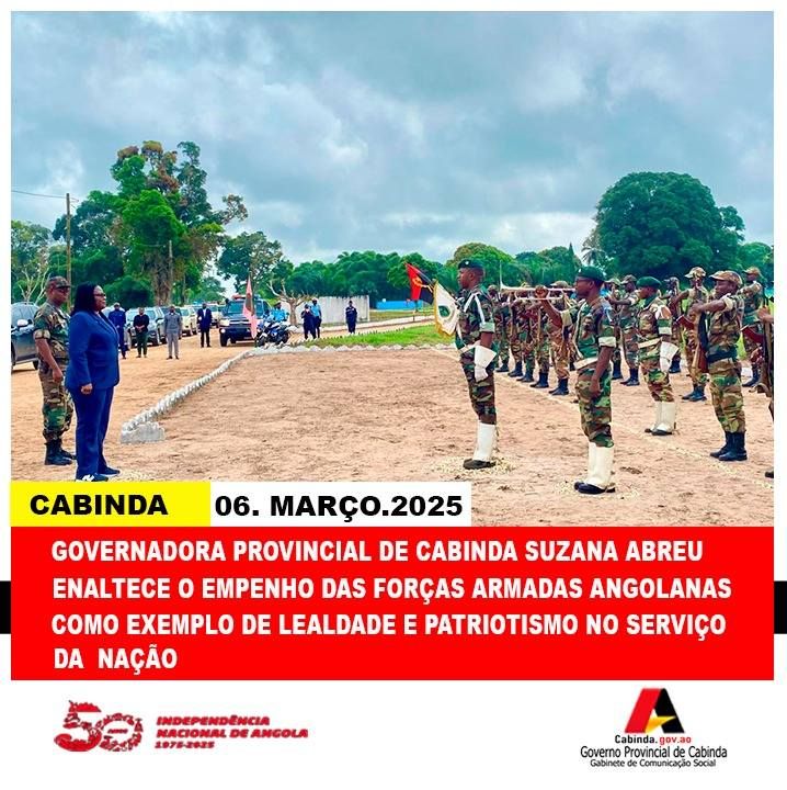 A Governadora Provincial de Cabinda, Suzana Abreu, presidiu esta Quinta-feira, 6 de Março de 2025, ao acto de Abertura do Ano de Instrução de Preparação Operativa, Combativa e Educativo-Patriótica 2025/2026, na Região Militar Cabinda, que teve lugar na 10ª Brigada de Infantaria Motorizada do Ntó.