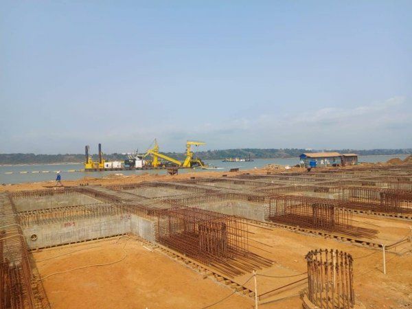 Nesta fase estão a ser construídos os pilares, as vigas e os locais de atracação dos navios.