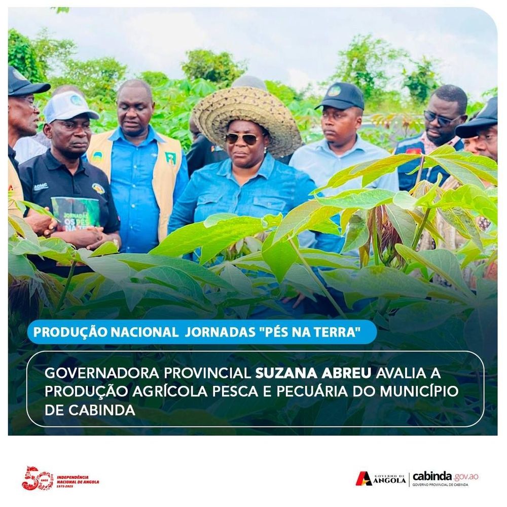 A Governadora Provincial de Cabinda, Suzana Abreu, avaliou, hoje, Sexta-feira, 25 de Abril de 2025, a produção agrícola no âmbito das Jornadas designadas "OS PÉS NA TERRA". As jornadas foram realizadas desta vez no Município de Cabinda, abrangendo os domínios agropecuários e pesqueiros e sempre sob lema: Cabinda, Terra de Viver e Investir.