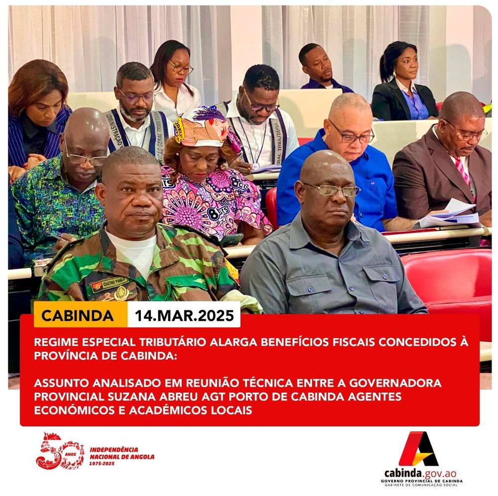 Preocupada com o pouco aproveitamento deste instrumento legal, que muito pode contribuir para a redução do custo de vida em Cabinda, a Governadora Provincial Suzana Abreu reuniu-se, hoje, Sexta-feira 14 de Março de 2025 com os responsáveis da AGT, Porto de Cabinda, agentes económicos e académicos para analisar o impacto do Regime Especial Tributário em Cabinda.