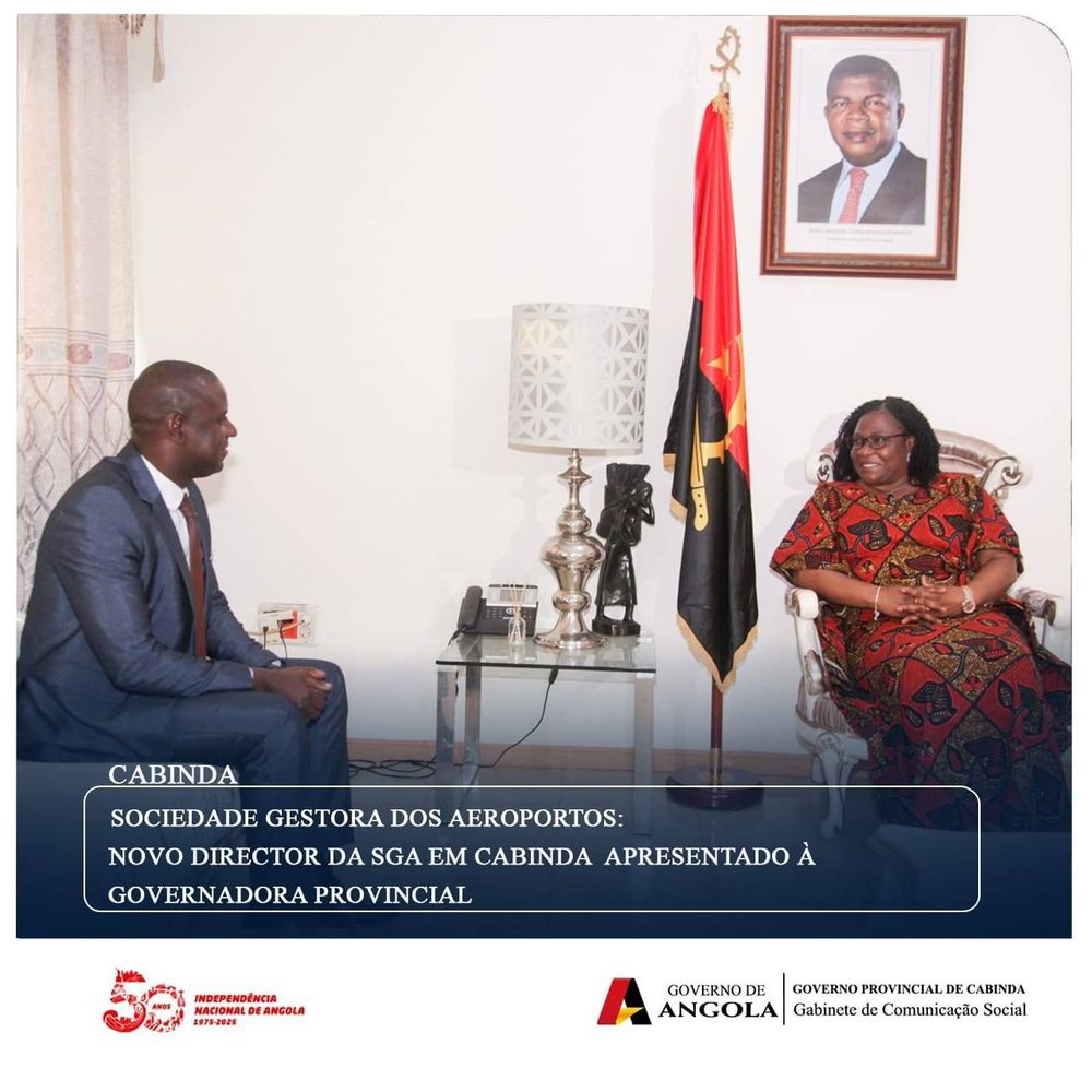 A Governadora Provincial, Suzana Abreu, recebeu, em audiência, o novo Director da Sociedade Gestora dos Aeroportos (SGA) em Cabinda, Abel Hossi Chissalukila. A apresentação teve lugar esta Quinta-feira, 20 de Março de 2025, no Governo Provincial.